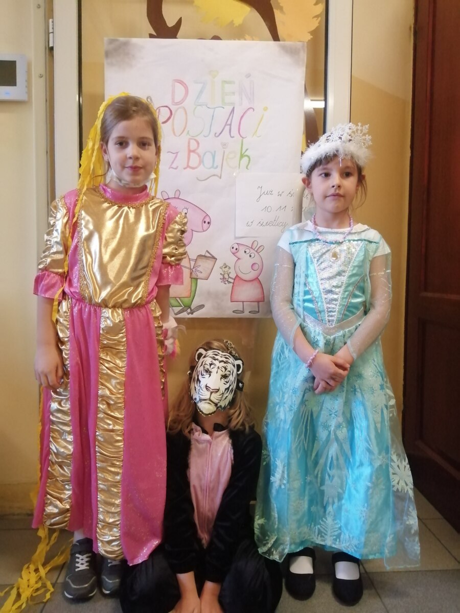 W dniu 10.11.2021 w naszej świetlicy odbył się „Dzień Postaci z Bajek”. Dzieci mogły przebrać się za swoich ulubionych bohaterów bajkowych w czym dzielnie pomogli im rodzice. W tym dniu atmosfera w świetlicy była radosna i wesoła, odbywały się różne konkursy i quizy, a nawet turniej gier bajkowych- Disneya dla klas drugich. Wszystkie pytania i zagadki dotyczyły znajomości polskich i nie tylko bajek i baśni, a za poprawną odpowiedź można było wygrać małe „conieco” jak mawiał jeden z bohaterów bajki (zgadnij który ?). Oglądaliśmy też bajkę, a jakże, były to przygody smerfów. Wszyscy się świetnie bawili, będziemy pamiętać to wydarzenie długo i już nie możemy się doczekać kolejnego- do zobaczenia za rok 🙂