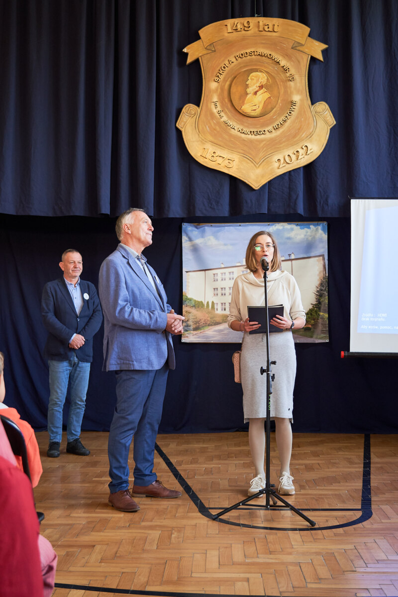 W dn. 23.X.2022 w niedzielę miało miejsce ważne wydarzenie dla mieszkańców Staromieścia: otwarcie Staromiejskiej Ścieżki Historycznej. Uczestnicy wydarzenia spotkali się pod dworem Jędrzejowiczów przy Pomniku10 Rąk o godzinie 13.00 gdzie swój początek ma Staromiejska Ścieżka Historyczna i udali się w stronę Szkoły Podstawowej nr 13 pod kierunkiem przewodnika p. Dariusza Mazurka, który przybliżył historię Staromieścia. O godzinie 14.00 w szkolnej sali gimnastycznej odbyła się główna uroczystość, na którą przybyli zaproszeni goście: p. Bogdan Kaczmar dyrektor Muzeum Okręgowego w Rzeszowie, p. Mirosław Kwaśniak przewodniczący Komisji Edukacji oraz wiceprzewodniczący Rady Miasta, radni miasta Rzeszowa p. Grażyna Szarama i p. Sławomir Gołąb, p. Barbara Machniak dyrektor naszej szkoły pełniąca funkcję wiceprezesa Stowarzyszenia Przyjaciół Staromieścia oraz p. Marek Chłanda prezes Stowarzyszenia Przyjaciół Staromieścia. Szkoła Podstawowa nr 13 ściśle współpracuje ze Stowarzyszeniem Przyjaciół Staromieścia. W zeszłym roku otworzono Izbę Historyczną, której szkoła użyczyła siedziby. Szkoła aktywnie włącza się w propagowanie historii osiedla Staromieście, w niedzielę można było zakupić Staromiejskie Zeszyty wydawane od końca lat 90- tych, które są skarbnicą wiedzy o Staromieściu. Goście zwiedzili Izbę Historyczną, była to sentymentalna podróż w przeszłość. Na zdjęciach zwiedzający rozpoznawali siebie, swoich rodziców. Można było skosztować potraw regionalnych, a swoim występem umilił nam czas zespół Resovia Saltans. Na pamiątkę tego spotkania każdy uczestnik dostał przypinkę ze znakiem Stowarzyszenia Przyjaciół Staromieścia. Zdjęcia wykonał fotograf p. Karol Karnas.