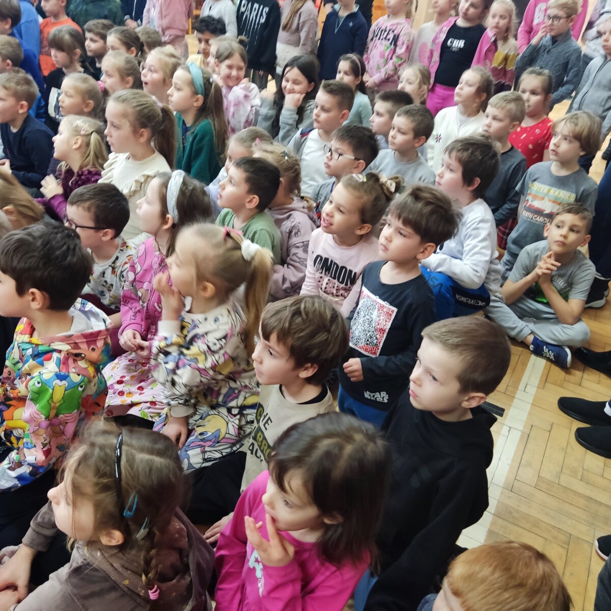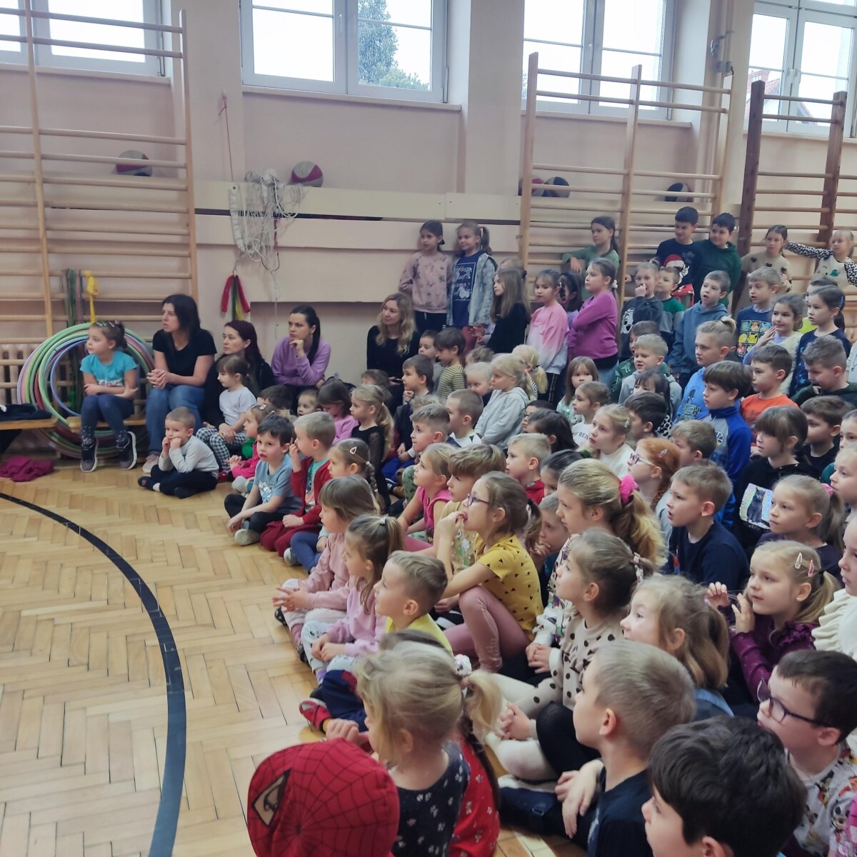 25 stycznia mieliśmy ogromną przyjemność podziwiać przepiękny występ w wykonaniu p. IGI KLESYK i jej gimnastycznych partnerek. Dzieci z wypiekami na twarzy obserwowały zjawiskowe podnoszenia, niesamowite podrzuty i efektowne figury akrobatyczne. Niektóre z nich przeciwstawiały się prawom natury i grawitacji. Siła, elastyczność i gibkość gimnastyczek na pewno pozostanie w naszej pamięci na bardzo długo.