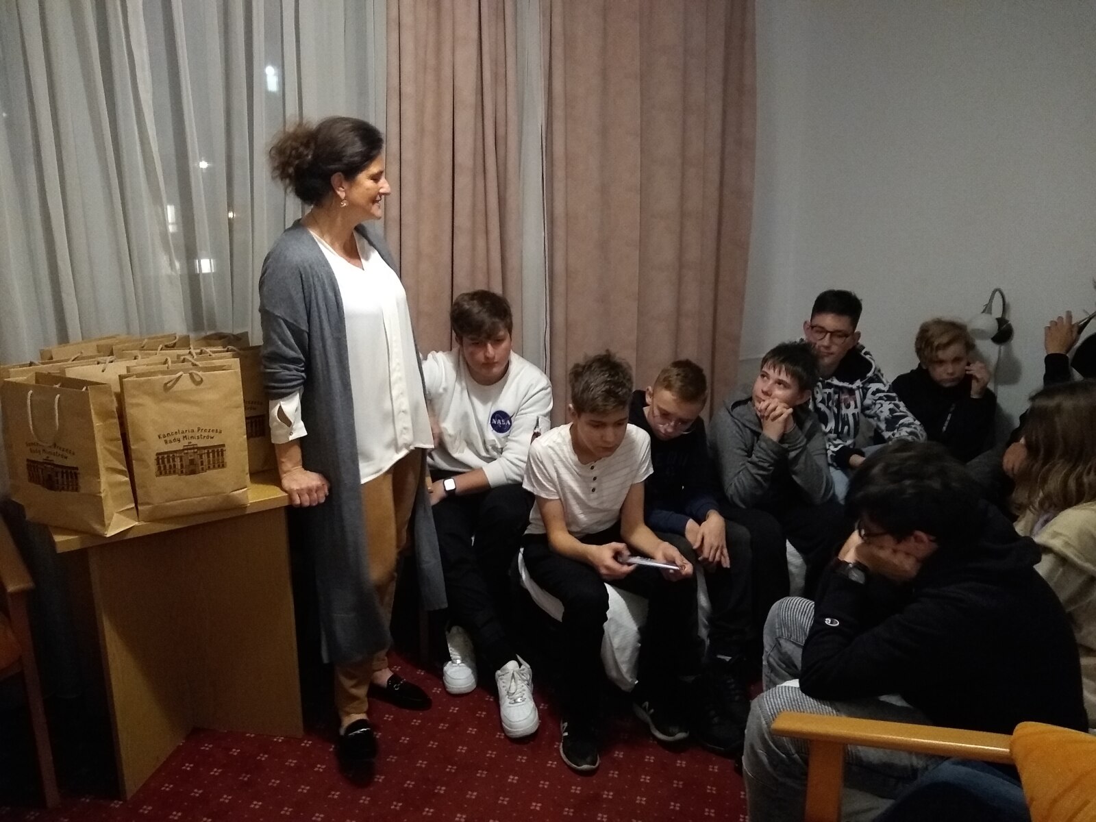 Spotkanie przebiegło w bardzo sympatycznej atmosferze. Wszyscy uczestnicy prelekcji otrzymali upominki w postaci: materiałów promocyjnych miasta Warszawy i gadżetów z Kancelarii Prezesa Rady Ministrów. Natomiast Pani Jadwiga Fuglewicz wraz z klasami została zaproszona do zwiedzenia sejmu RP, kiedy zakończy się pandemia i taka możliwość znów się pojawi.