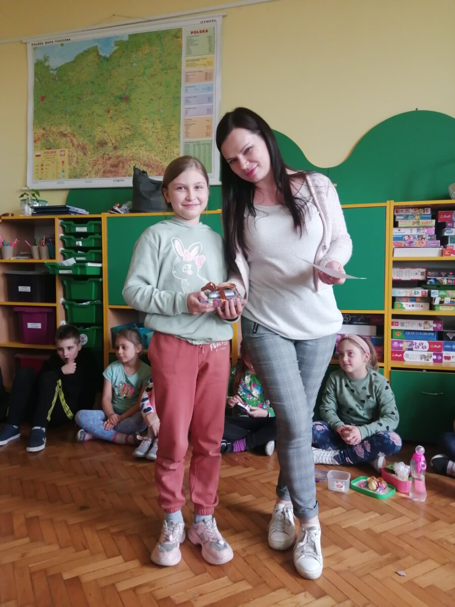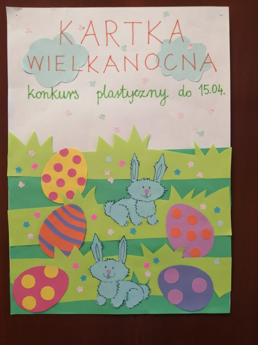 W dn. 20.04. 2022 został rozstrzygnięty świetlicowy konkurs plastyczny ” Kartka wielkanocna”. Nagrodziliśmy dzieci w czterech kategoriach wiekowych: kl.1a, kl.1b, kl.2a, kl2b, kl.3a, kl3b, kl.4a. Nagrody otrzymali: